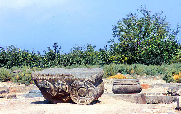ドゥヴィンの総主教の宮殿跡に発掘された 柱頭断片と 柱礎