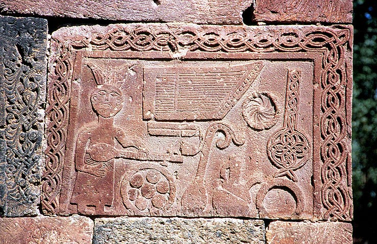 、楽人と楽器群を描いた壁面レリーフ