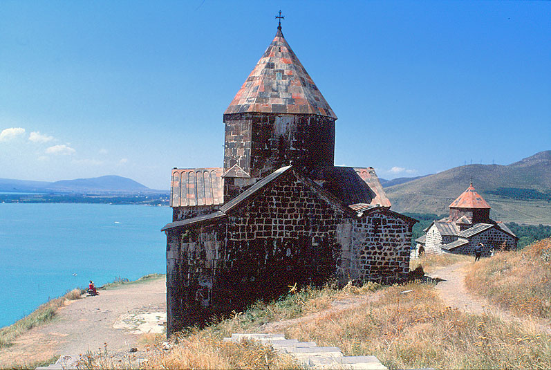 セヴァンの セヴァン修道院 2004年撮影 セヴァン湖を望む 聖母(スルプ・アストヴァツァツィン)聖堂、874 右奥に見えるのが、聖使徒(スルプ・アラケロツ)聖堂、874 The Sevana Vank at Sevan, 874.