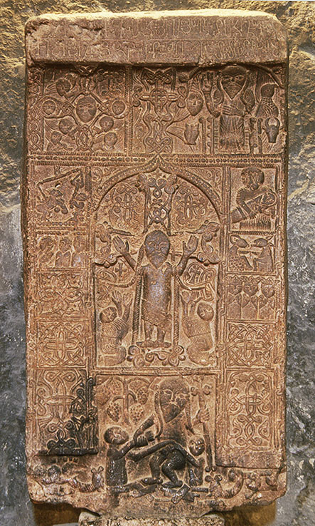 セヴァンの セヴァン修道院 聖母(アストヴァツァツィン)聖堂内部の ハチュカル イエスの磔刑を描いた「アメナプルキチュ」(救世主)のハチュカル A Khachkar of Amenaprkich in the Sevana Vank at Sevan