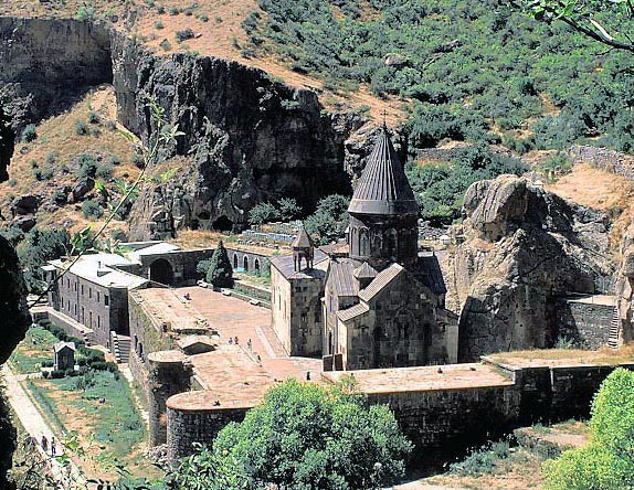 ゲガルダ・ヴァンク(槍の修道院)を東の山から見る。