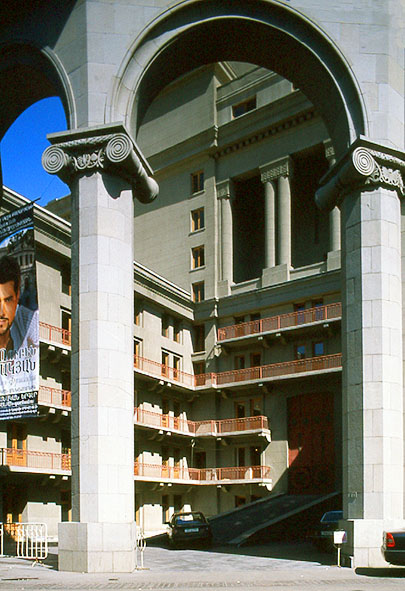劇場の裏側入口。柱頭のデザインは ズヴァルトノッツのカテドラルに倣っている。