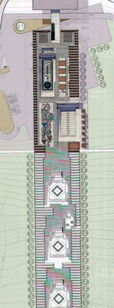 イェレヴァンの カスカード複合体 第一のテラスから 頂部の戦争モニュメントまで 階段状に登っていく「露壇式庭園」である。 イェレヴァンの カスカード複合体 平面図(ウェブサイト より)
