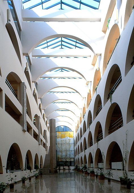 ライトのマリン郡庁舎を思い起こさせる。