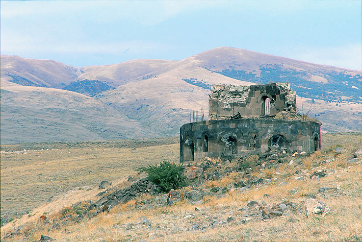 丘の上に孤立して建つ、ゾラヴァンのゾーラヴァル聖堂遺跡
