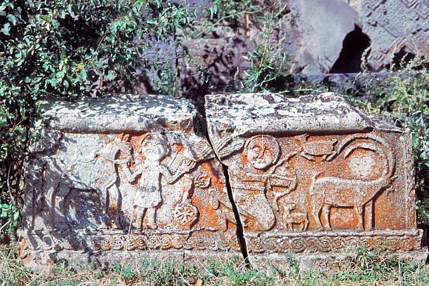 グンデ・ヴァンクの境内にある、レリーフ彫刻の墓碑