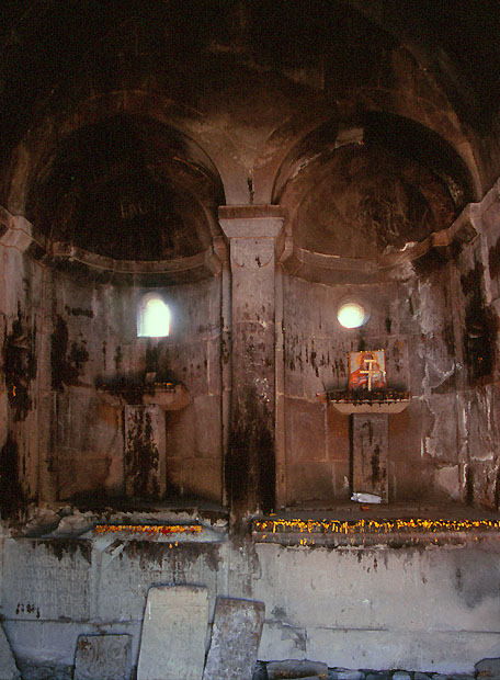 外からは2棟の建物に見えるが、内部は一続きで、2連のアプスというのは きわめて珍しい。