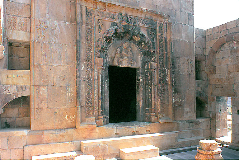 囲われた前庭というのは珍しい。 扉口まわり 密に彫刻されている。