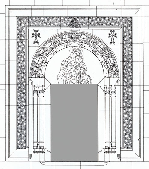 スピタカヴォルの 聖アストヴァツァツィン聖堂 扉口 The portal of the church of Surp Astvatsatsin at Spitakavor. (From "Portals of Monumental Architecture in Armenia" Sh. R. Azatian, 1987)