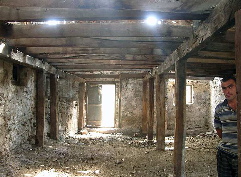 別の用途に用いられていたのか、木造の中二階の床架構がある。