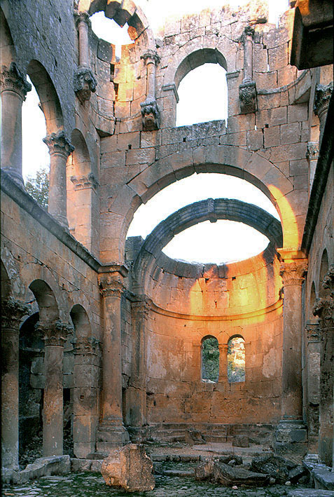 アラハン修道院の東聖堂、5世紀、夕陽のあたるアプス