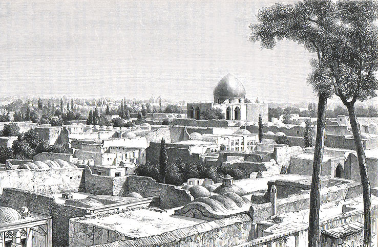 ニュ-・ジュルファ地区の古図 19th century Woodcut depicting the area of New Julfa in Isfahan. (From "La Perse, la Chaldée et la Susiane" by Mme Jane Dieulafoy, 1887)