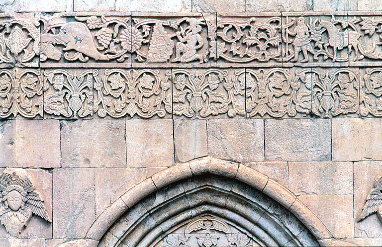 植物紋、天使、聖人像など、レリーフ彫刻で満ちていて、アフタマール修道院を思わせる。