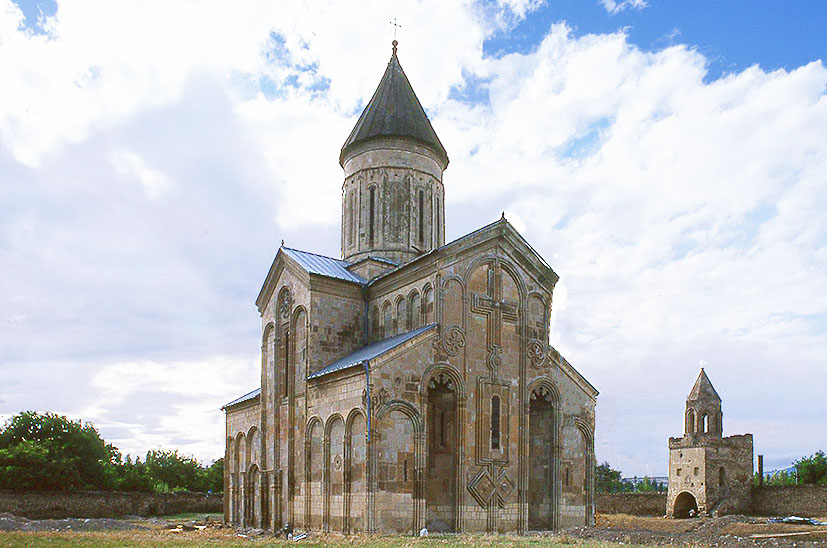 サムタヴィシの 聖グリゴール聖堂(カテドラル) 1030-68年 長い胴部(ドラム)をもつ、典型的なジョージア聖堂 東側壁面のアプスの両側にV字型断面の深い切り込み(ニッチ)がある。 これがアルメニア聖堂に受け継がれて、12世紀以降の標準手法になる。