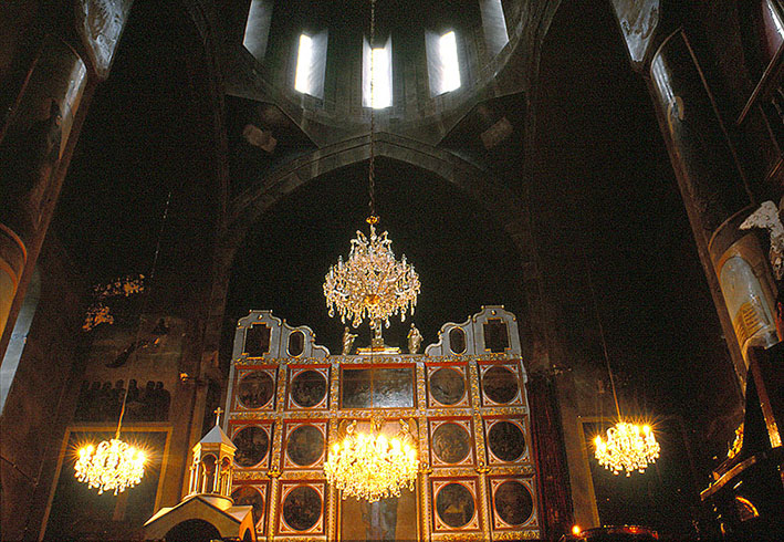 ビザンティン風に祭壇障壁 iconostasis が もうけられている。