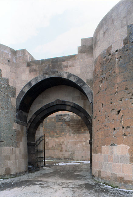 入口の門の向こうの壁に、ライオンのレリ-フ彫刻