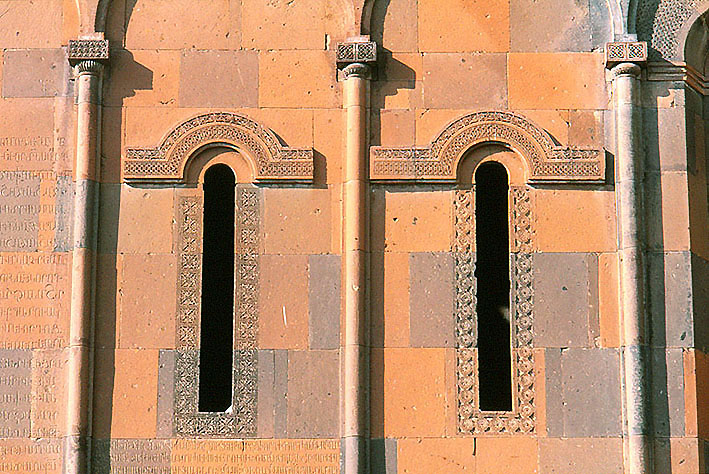 アニのカテドラル、南壁面。 繊細な彫刻をほどこされた、アルメニアに典型的な窓まわり装飾