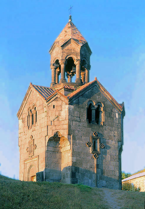 ハグバト修道院の、夕陽のあたる鐘楼の偉容、1245年