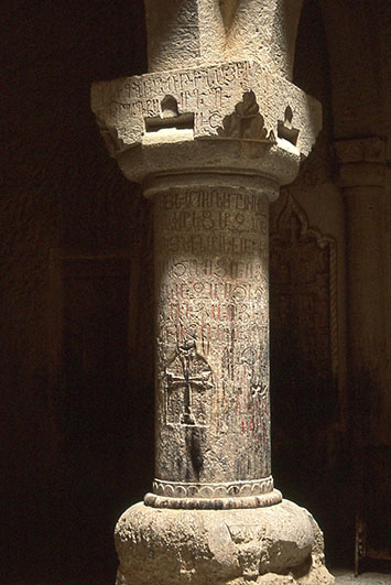 上の石窟ガヴィット内の、彫り出された4本柱のうちの1本。