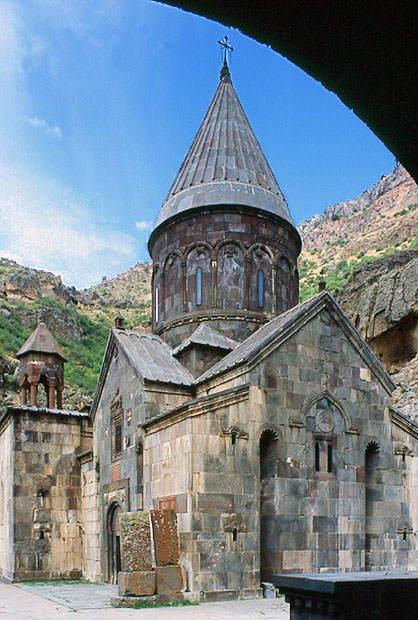 ゲガルド修道院。 東側の通用門より、高さ 24.5mのカトリケーを見る。