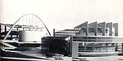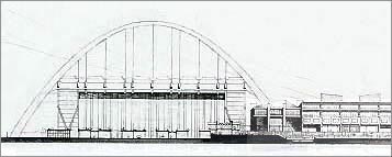 中でも ル・コルビュジエ (1887-1965)の案は、巨大なアーチから 大ホールの屋根を吊るという 大胆な構造計画にして、かつモニュメンタルな造形で群を抜いた。もしこれが実現していれば 近代建築の最高傑作になったろう、とも言われるほど 有名な設計案である。この案は 実現こそしなかったが、その後の世界各地の近代建築家たちに 大きな影響を与えた。丹下健三の広島平和公園のコンペ案に 慰霊のための大アーチが モニュメンタルに架けられていたことはよく知られているし、実現したものとしては アメリカの建築家、イーロ・サーリネンによる ジェファーソン・メモリアル・アーチ (セントルイス)、その他がある。