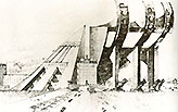 ところが ロシア革命の後、スターリンは宗教弾圧を強めて、1931年に この聖堂を爆破してしまう。ソ連邦の首都モスクワを、ローマやパリに匹敵するような都市にしようとする 新たな「モスクワ再建計画」に基づき、この敷地には 聖堂に代わって、国家を象徴する「ソヴィエト大宮殿(ソヴィエト・パレス)」を建設することとし、またしても一大国家コンペを催すのである。