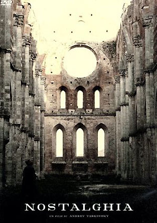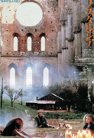サン・ガルガーノのシトー会修道院聖堂の遺跡をあしらった『ノスタルジア』のチラシ Pamphlets of the movie "Nostalghia" by Andrei Tarcovsky, based on the Cistercian monastery at San Gargano.