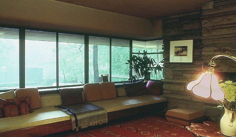 落水荘(カウフマン邸)離れのゲスト・ハウスの ラウンジ