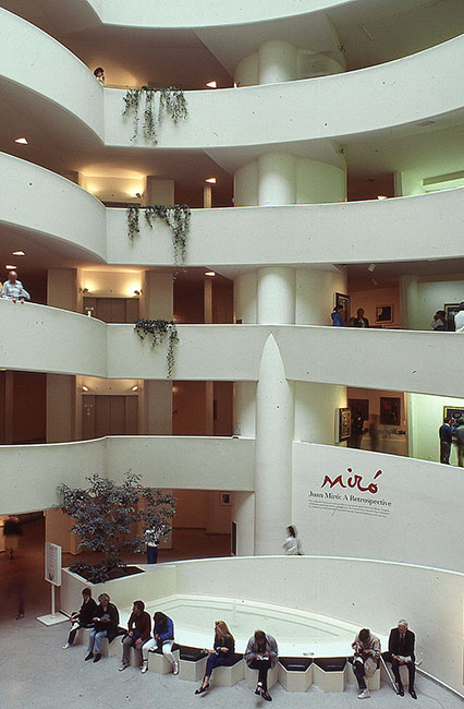 大ホールを、螺旋状の斜路から成る 展示室が囲む。