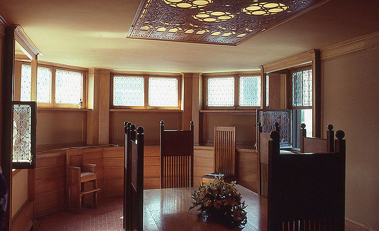 ライト自邸の食堂。 椅子も ライトのデザイン。