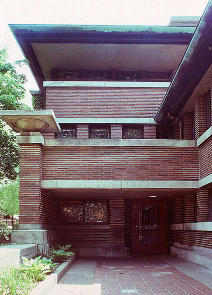 ロビー邸のエントランスは、敷地の後ろ側に回り込むようにして作られている。