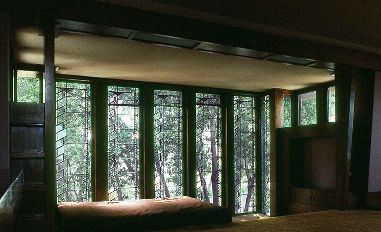 子供室(ナースリー)。 東の庭側が、全面 ステンドグラスの窓になっている。