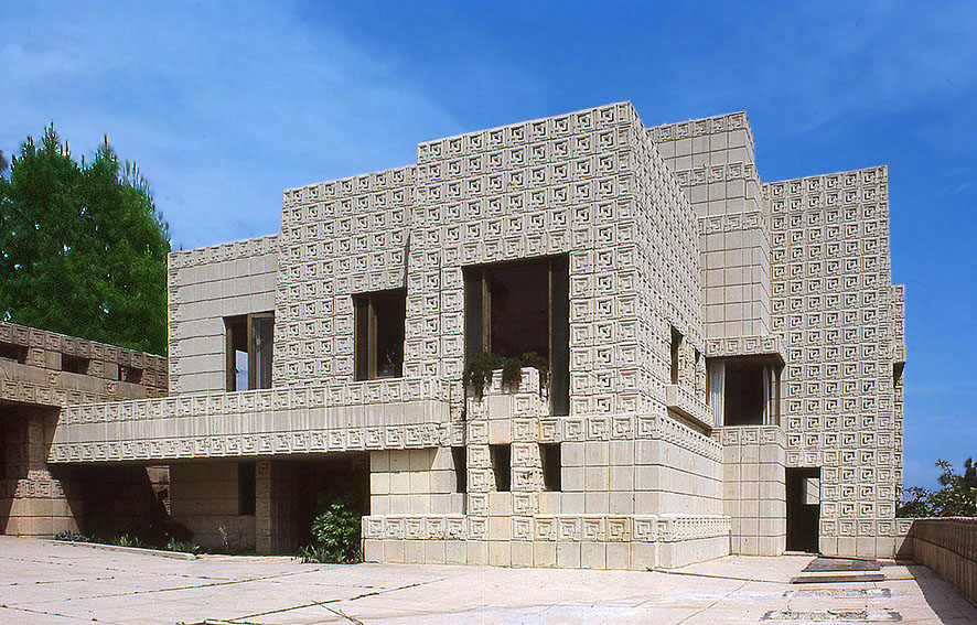 エニス邸 (コンクリートブロックの邸宅)、1923、ロサンジェルスの高台