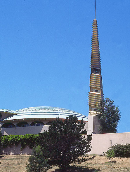 マリン郡庁舎の図書館と、金色の換気塔(煙突)