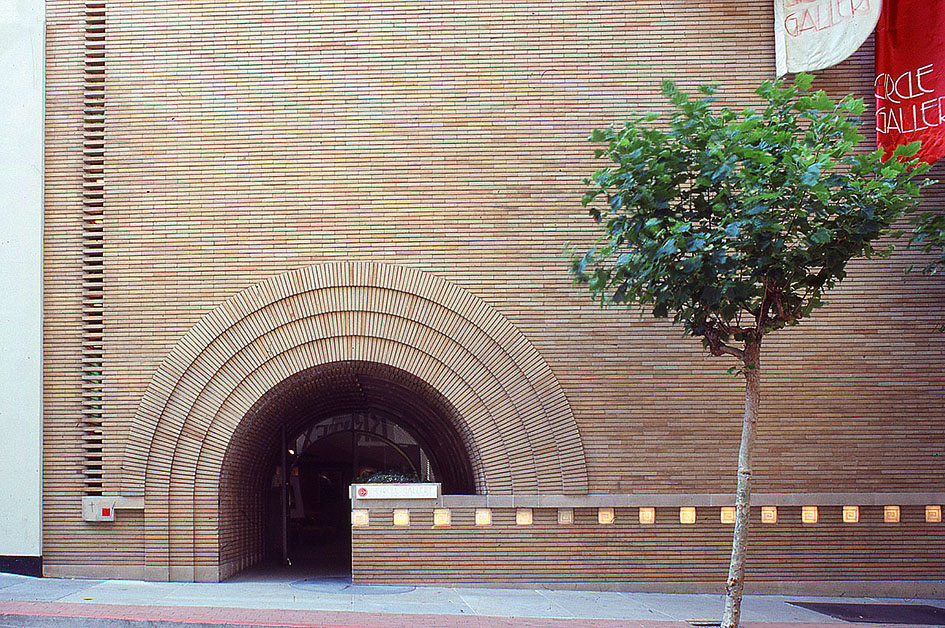 ショーウィンドウを設けずに アーチ開口だけにした、前面道路側ファサード