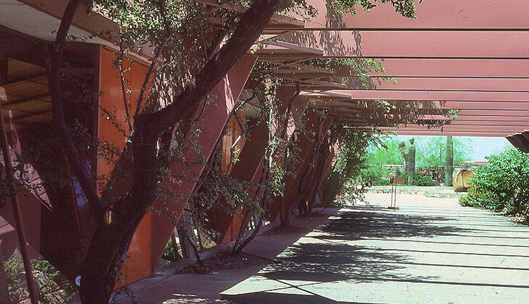 タリアセン・ウェストのパーゴラ。 左側は製図室。