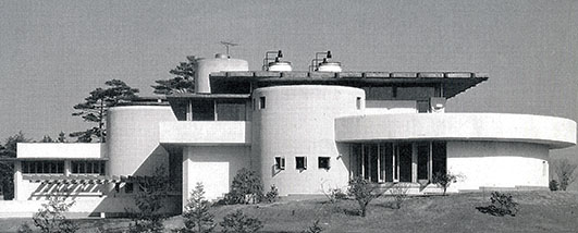 1949-51年に 遠藤新建築創作所で学び、1952-53年に タリアセンで直接 ライトの教えを受けた 天野太郎 (1918-90) は、ライトの作風をよく身につけ、 この 武蔵嵐山カントリークラブハウス(1961竣工)などを設計した。 (『有機的建築の発想、天野太郎の建築』吉原正編、2001、建築資料研究社 p.166 より ) 復原ジェスター邸を見ると、この建物を思い出す。