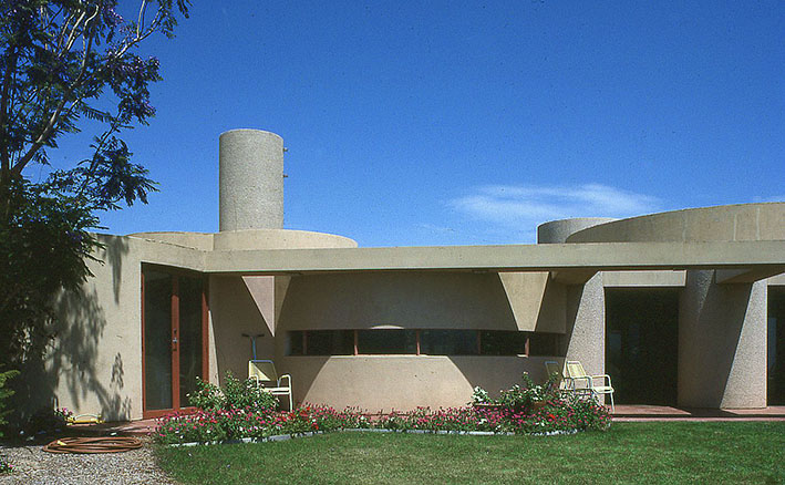 タリアセン・ウェスト内の復元住居(ジェスター邸) < 参考 > 1949-51年に 遠藤新建築創作所で学び、1952-53年に タリアセンで直接 ライトの教えを受けた 天野太郎 (1918-90) は、ライトの作風をよく身につけ、 この 武蔵嵐山カントリークラブハウス(1961竣工)などを設計した。 (『有機的建築の発想、天野太郎の建築』吉原正編、2001、建築資料研究社 p.166 より ) 復原ジェスター邸を見ると、この建物を思い出す。