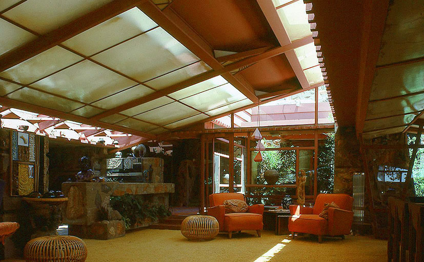 住居部分の居間(ガーデン・ルーム)、小中庭に面するコーナー
