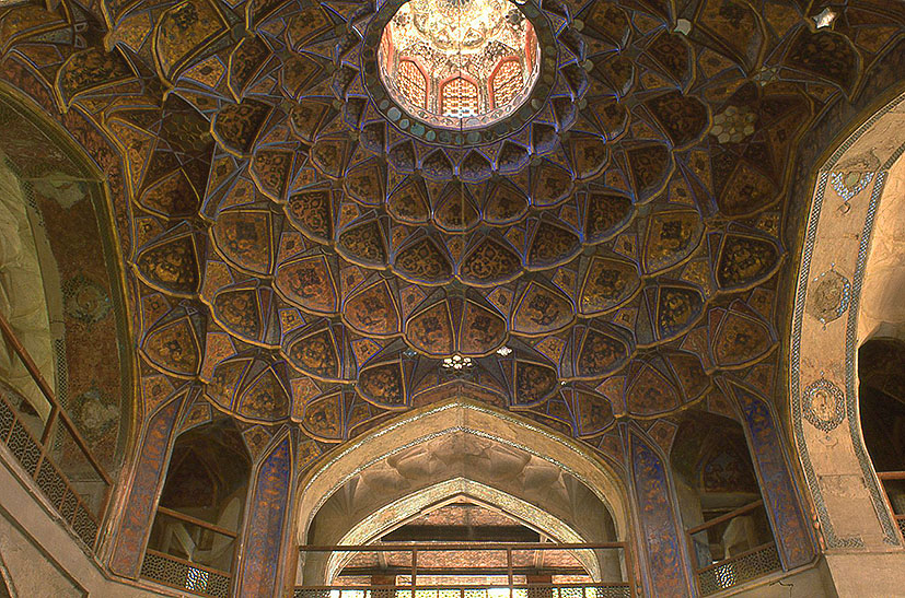 ハシュト・ベヘシュト(八楽園)宮殿、イスファハーン(イラン)1670年 赤と金をベースにした、豪華絢爛なムカルナス天井 Muqarnas Ceiling of Hasht Behesht Palace in Isfahan, 1670