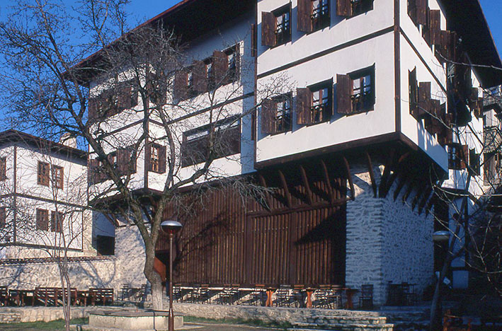 カイマカムラル・エヴィ(邸)、19世紀初め、サフランボル(トルコ) 2階が張り出して 方杖(ほうづえ)で支えられるのが、トルコの民家の特徴。 エヴィとは 家、邸宅の意で、現在は民俗博物館として用いられている。