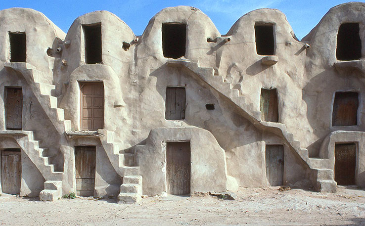 日乾しレンガ造の上に 土のプラスターを塗っている。