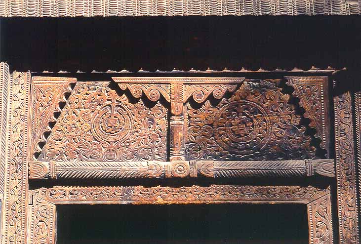 ジュマート(金曜モスク)の入口上部の木彫、カラーム