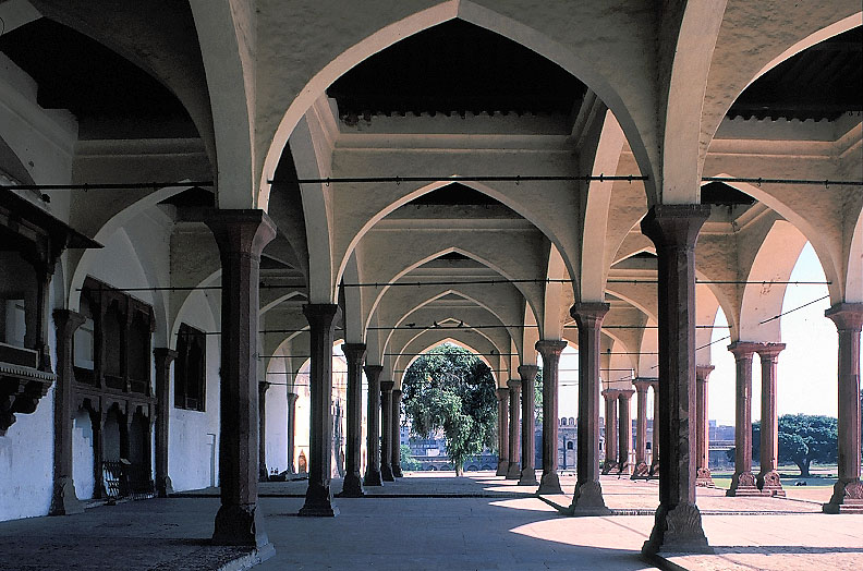 The Diwan-e-Am (Public Audience Hall) constructed by Shah Jahan in 1631 in the Lahore Fort. The left end is the emperor's throne, from which he judged suits.