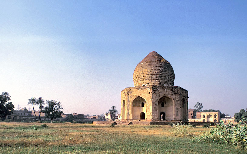 The Mausoleum of Asaf Khan at Shahdara, c.1641, Lahore. Its tile work on the surface has been almost all lost.