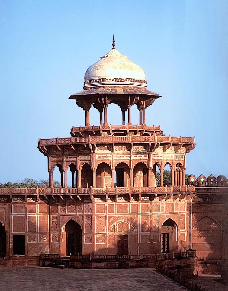タージ・マハル廟の周壁の要所に乗る 8本柱の大きなチャトリー、アーグラ