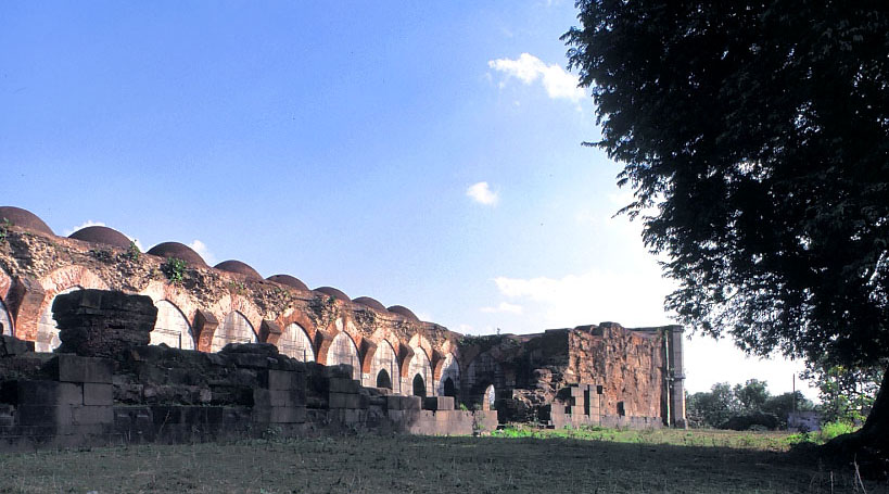 石の仕上げを併用するレンガ造の バーラソーナ・モスク(大黄金モスク)、ガウル、1526年