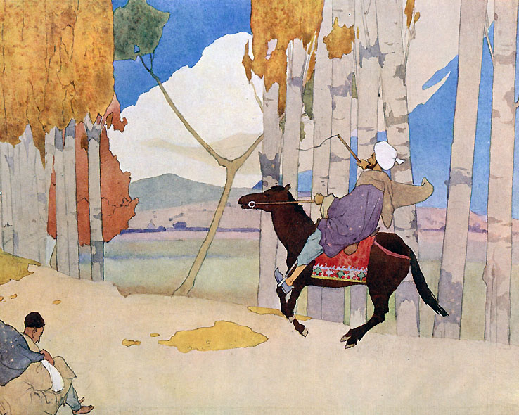 "Travellers in Kashmir" watercolored by Gertrude Hadenfeldt. ガートルード・ハーデンフェルト (c.1907 -1938) は英国人の女流画家で、インド北部をこよなく愛し、シュリーナガルのハウス・ボートに住み、ラダック、チベット、中国にも滞在した。 特にカシュミールの風物を 詩情あふれる水彩画に描いたが、若くして世を去ったらしい。 したがって彼女の作品集というものはないが、数冊の本の中に彼女の絵が載せられている。『カシュミールの魅惑』 ("The Charm of Kashmir") という、知られざるカシュミールを紹介した 当時の豪華本には 多くの絵や写真が貼り込まれていて、アバニンドラナート・タゴールの、日本画のような絵が 5点あるのも嬉しいが、特にこれらハーデンフェルトの3点の水彩画がすばらしい。(「インド・イスラーム建築史」と直接 関係があるわけではないが、シュリーナガルとの関連で、ここに紹介しておくことにした。)