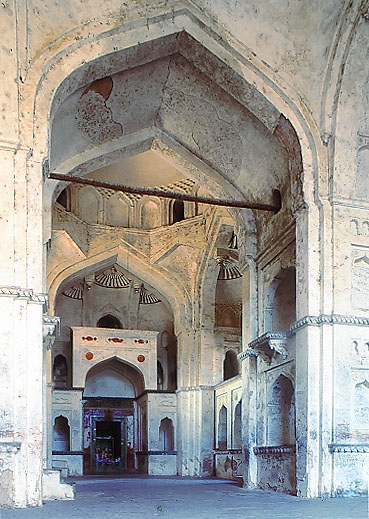 イスラーム建築の影響を強く受けた チャトルブジャ寺院、17世紀初め、オルチャ マンダパは 尖頭アーチ、スキンチ、ドーム天井と、モスクのような 内部空間であるが、外観はシカラ様式の 伝統的なヒンドゥ寺院である。