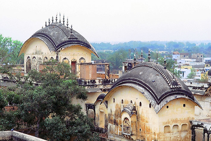 バンガルダール屋根の プラーナ・マハル殿、ディーグ 東インドのベンガル地方における民家形式の、四隅が垂れ下がった形の屋根形式を、 バンガルダールと言う。 もともとは、雨を早く流れ落すための 機能的造形であったが、 ムガル建築が これを取り入れ、さらにラージプート諸国に伝えた。